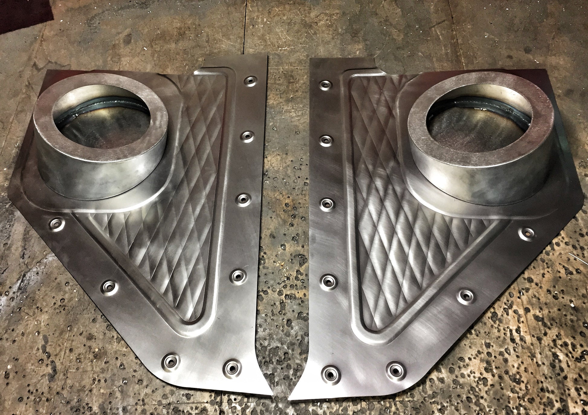 1960-1966 Chevrolet C-10 pleated kick panels . Available with or without speaker pods .
