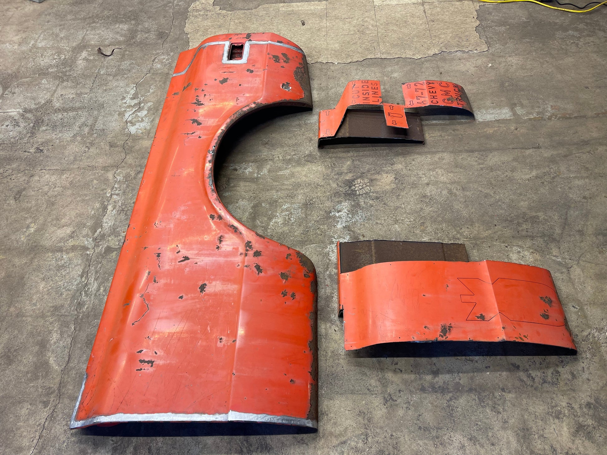 1967-1972 Chevrolet C-10 long bed to short bed (front of bedsides only ) template kit . This reusable template will allow you to cut the front bedside area of your 67-72 c10 and allow the body line to flow naturally and minimize line visibility and warpage. Comes with a passenger side, driver side template, interior wall template, and detailed written instructions for cutting the bedsides down . Self tapping screws for mounting included also.