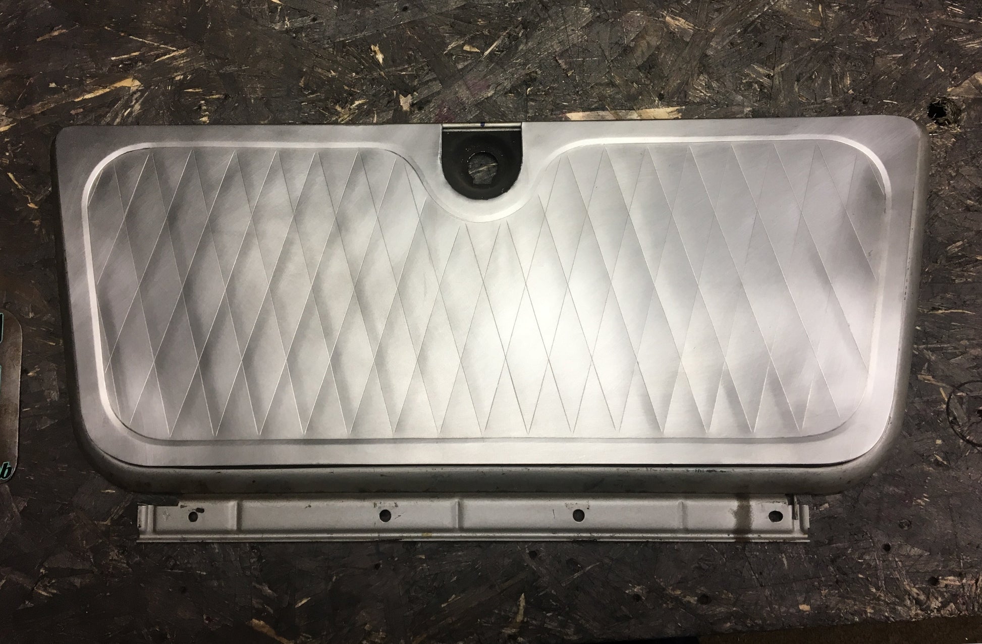 1967-1972 Chevrolet C-10 glove box weld on skin. These skins weld to the inside edge of your glove box door. Great way to give your dash a custom look. Available in wide or thin pleat design