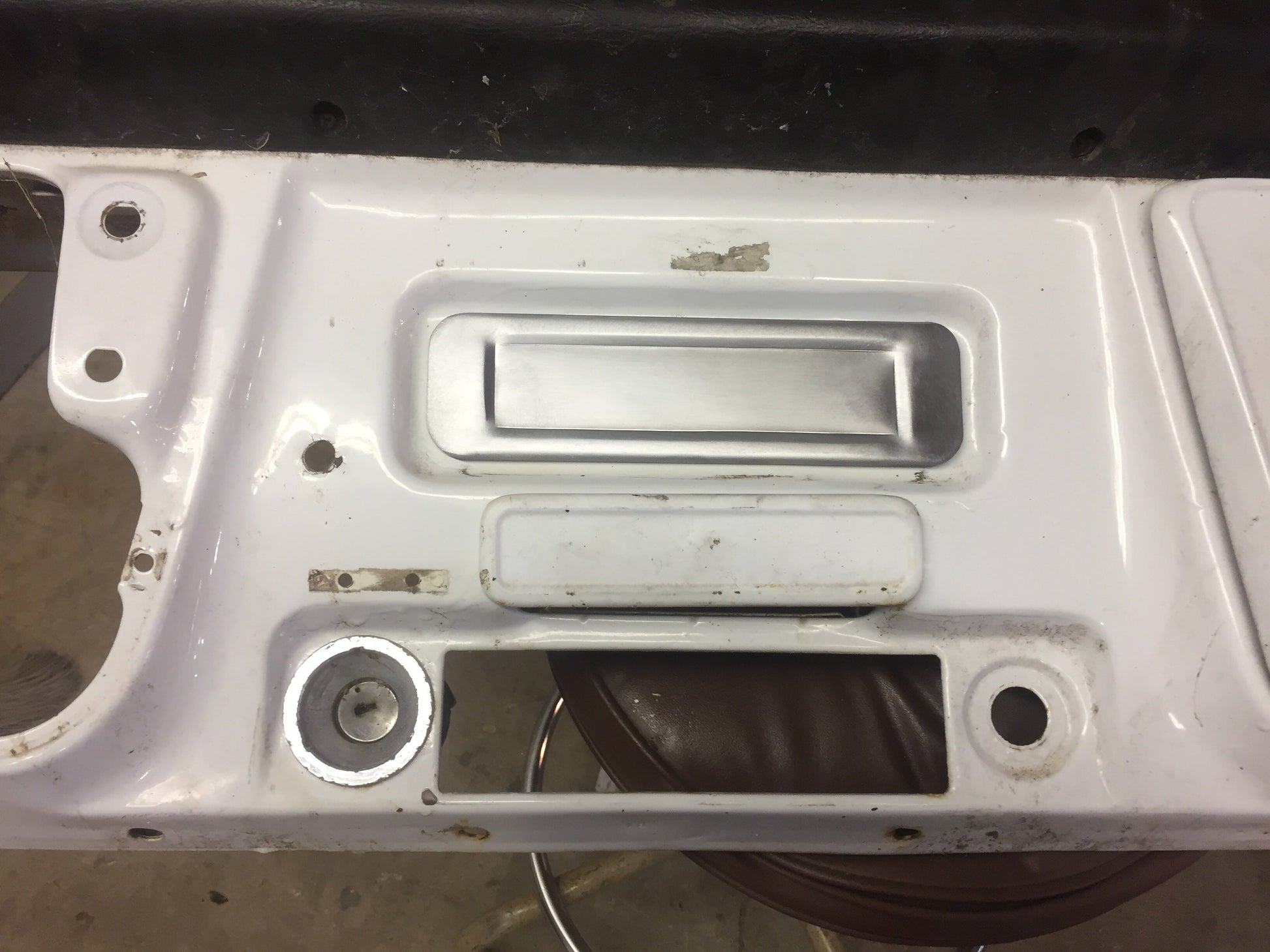 1967-1972 C-10 radio delete plate . Bolts in through the factory radio hole location in the dash . No drilling required . Made of 18g steel .