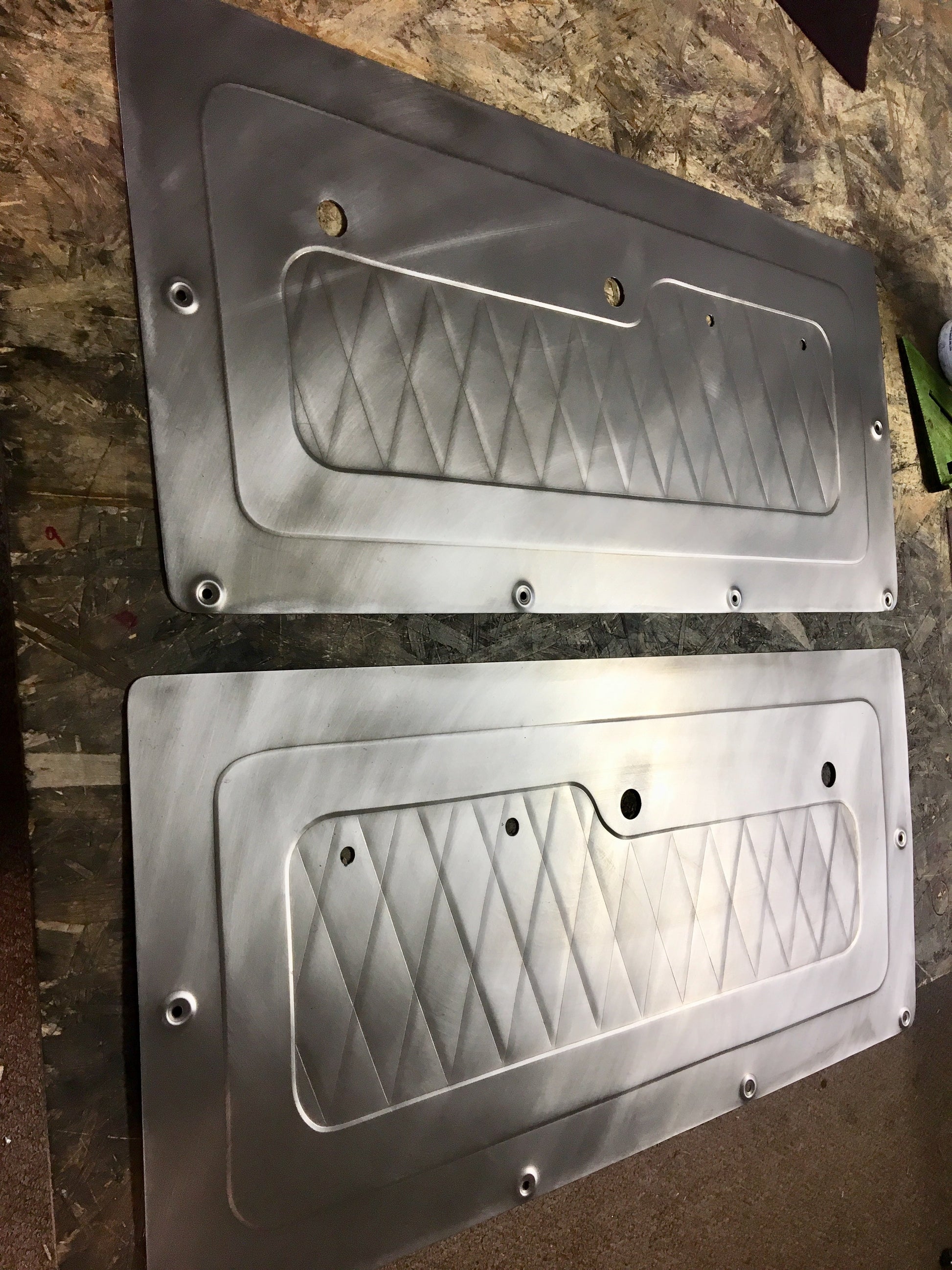 1967-1972 Chevrolet C-10 pleated door panels. These custom bead rolled door panels are made from 18 gage steel. Will work with factory handles and arm rests or our custom ones. Available in skinny pleat design or wide pleat design . Sold as a pair . Made to order.Average leave time 2-4 weeks