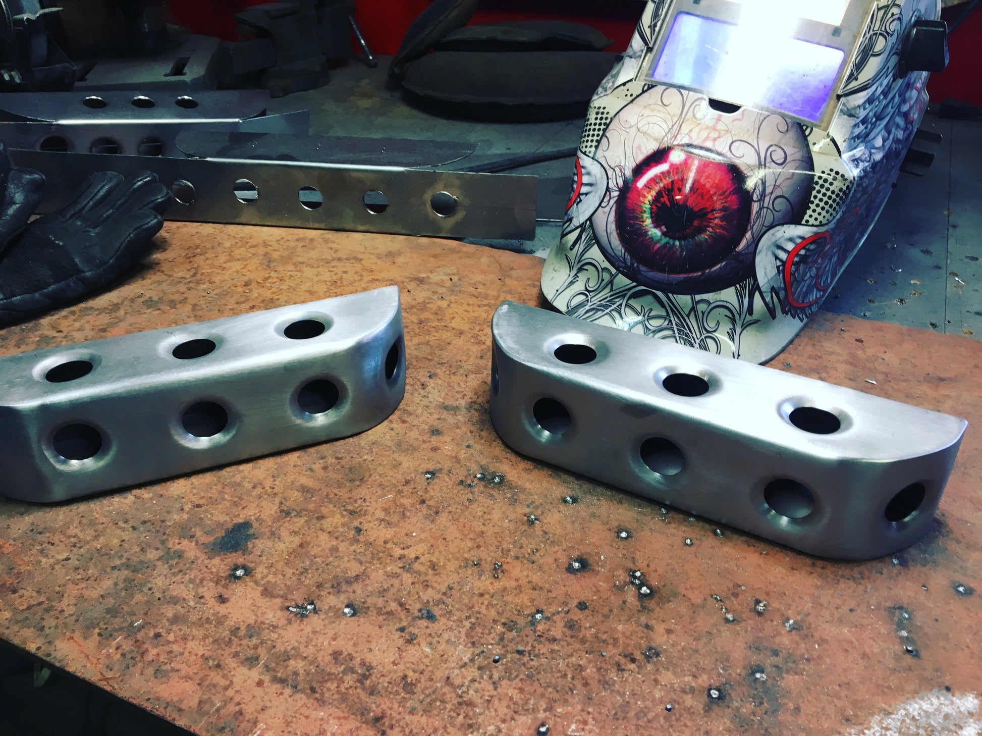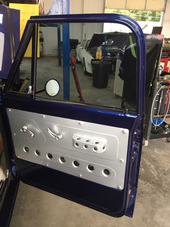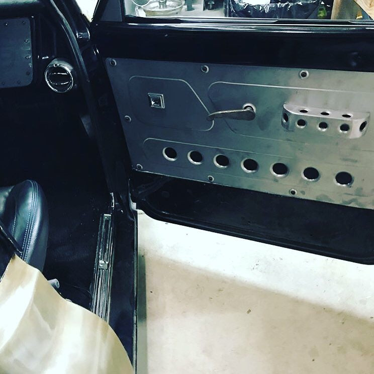 dimpled arm rests . Will work with our custom door panels or most stock metal door panels. Mounting hole spacing is 6 7/8” . Overall width is 8” . average leave times 2-4 weeks
